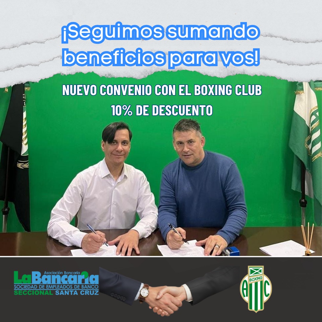 La Bancaria Santa Cruz firmó un nuevo convenio con la Asociación Atlética Boxing Club de Río Gallegos, mediante el cual todos los afiliados y afiliadas